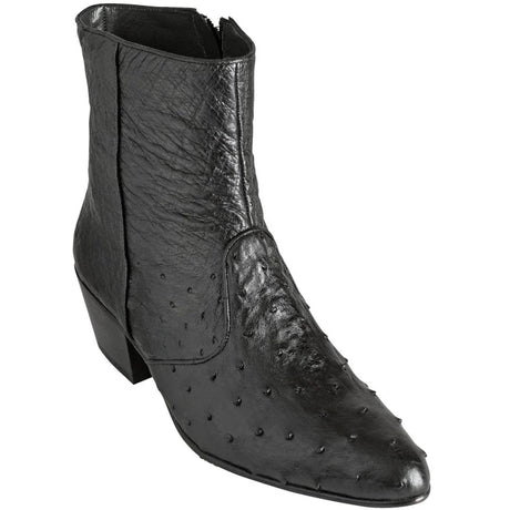 Genuine Full Quill Ostrich Skin Round Toe Dress Ankle Boots - Black