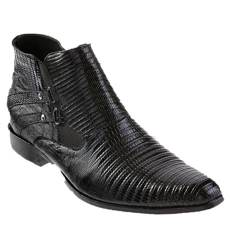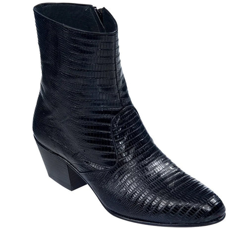 Genuine Lizard Skin Round Toe Dress Ankle Boots - Black